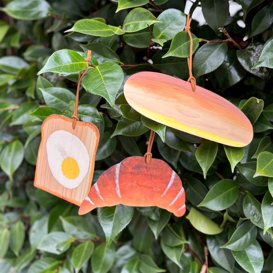 ヒノキ板でつくるパンと葉っぱのオーナメント